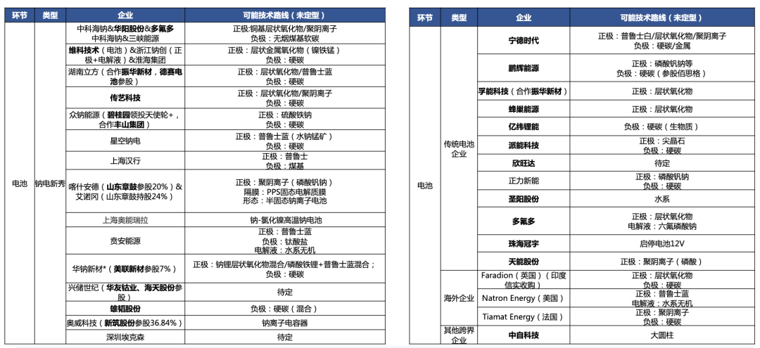 鈉離子電池電芯相關(guān)企業(yè):