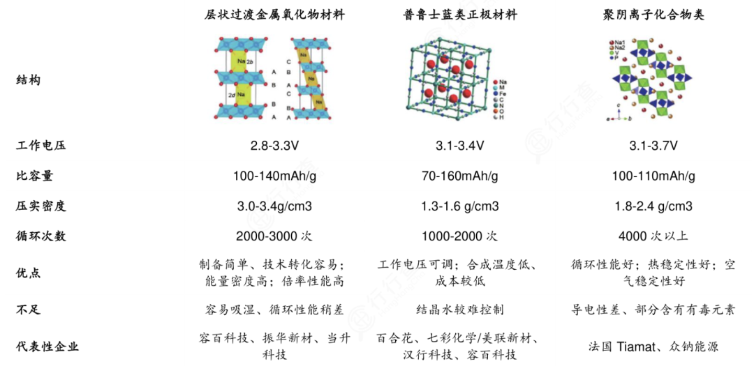 鈉電正極主流技術(shù)方案分為三大類:層狀氧化物、普魯士藍(lán)和普魯士白(普魯士藍(lán)的類似物)、聚陰離子。