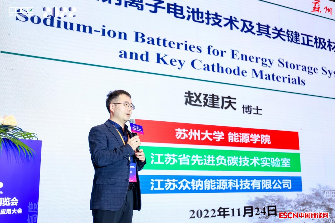 趙建慶:下面由我來(lái)給大家做關(guān)于儲(chǔ)能型鈉離子電池技術(shù)以及關(guān)鍵正極材料的匯報(bào)。我是來(lái)自蘇州大學(xué)能源學(xué)院以及江蘇眾鈉能源科技的趙建慶。我們江蘇眾鈉能源是圍繞聚陰離子型鈉離子電池正極材料所做的一系列的產(chǎn)業(yè)化推進(jìn)工作。