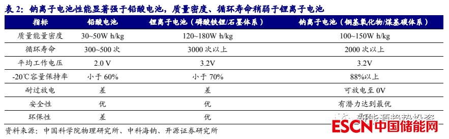 鈉電成本低廉,性能強(qiáng)于鉛酸,和鋰電相比各有優(yōu)劣
