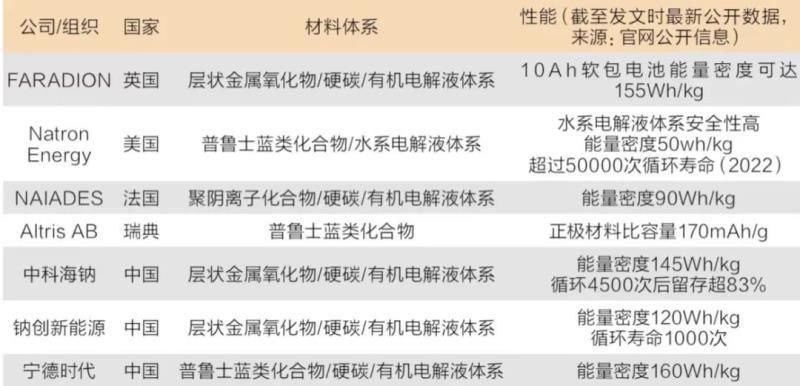 世界各國在政策等方面的重視也帶動了企業(yè)研發(fā)的動力。目前全球共有十幾家公司正在進行鈉離子電池產(chǎn)業(yè)化開發(fā),包括英國Faradion公司、法國Timat、美國Natron Energy等公司,以及我國的中科海鈉、寧德時代、鈉創(chuàng)新能源、星空鈉電等公司,都在進行鈉離子電池產(chǎn)業(yè)化的相關(guān)布局,均取得了重要成果。