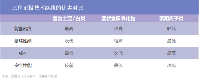 綜合研究得知,三種技術(shù)路線(xiàn)各有所長(zhǎng),并無(wú)明顯的優(yōu)劣之分,且均已有產(chǎn)品面世。但在已有投產(chǎn)下線(xiàn)的13家企業(yè)中,選擇層狀金屬氧化物和普魯士藍(lán)類(lèi)路線(xiàn)的企業(yè)數(shù)量明顯多于聚陰離子類(lèi)路線(xiàn)企業(yè)。