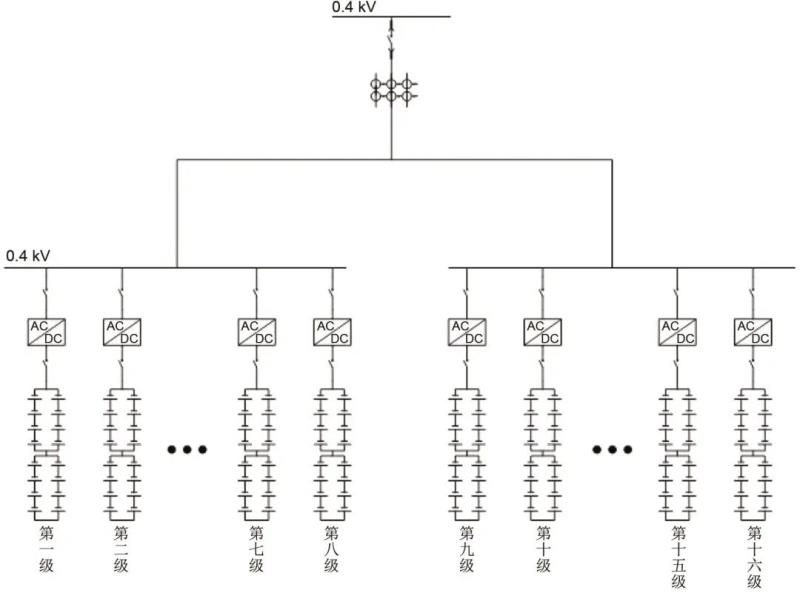 本項目儲能系統(tǒng)通過一路出線接入0.4 kV電壓母線,系統(tǒng)整體架構(gòu)如圖7所示。