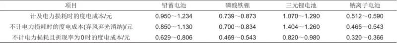 表3 4種電化學(xué)儲能形式的全生命周期度電成本