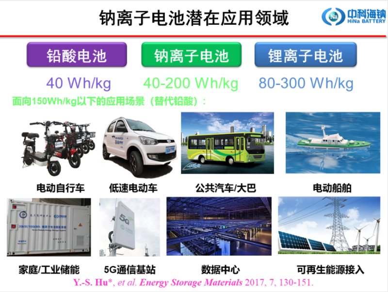 面對(duì)巨大的儲(chǔ)能市場,鈉離子電池以其低成本、長壽命和高安全的諸多優(yōu)勢(shì)有望在低速電動(dòng)車、電動(dòng)船、數(shù)據(jù)中心、通訊基站、家庭/工業(yè)儲(chǔ)能、可再生能源大規(guī)模接入和智能電網(wǎng)等多個(gè)領(lǐng)域快速發(fā)展(圖2),提升我國在儲(chǔ)能技術(shù)領(lǐng)域的競爭力與影響力。