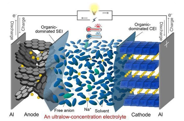 該研究結(jié)果近日以“Ultralow-Concentration Electrolyte for Na-Ion Batteries”為題發(fā)表在國(guó)際能源領(lǐng)域頂級(jí)期刊《美國(guó)化學(xué)會(huì)能源快報(bào)》(ACS Energy Letters)上。