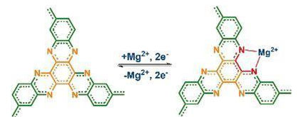 科學家們發(fā)現(xiàn)六氮雜三萘(HATN)是一種非常合適的陰極材料,而且已經(jīng)在鋰電池和超級電容器中對此種化合物進行了測試,證明其能夠成為一種高能量密度的陰極,快速插入鋰離子中。但是,與大多數(shù)有機材料一樣,HATN會在電解液中溶解,導致在充放電循環(huán)過程中,陰極不穩(wěn)定??茖W家們解釋說,現(xiàn)在的關(guān)鍵是通過讓單個分子之間聯(lián)系,穩(wěn)定材料的結(jié)構(gòu),結(jié)果得到了一種稱為聚合HATN或PHATN的有機聚合物,能夠讓鈉、鋁和鎂離子具備快速的反應(yīng)動力和高容量。