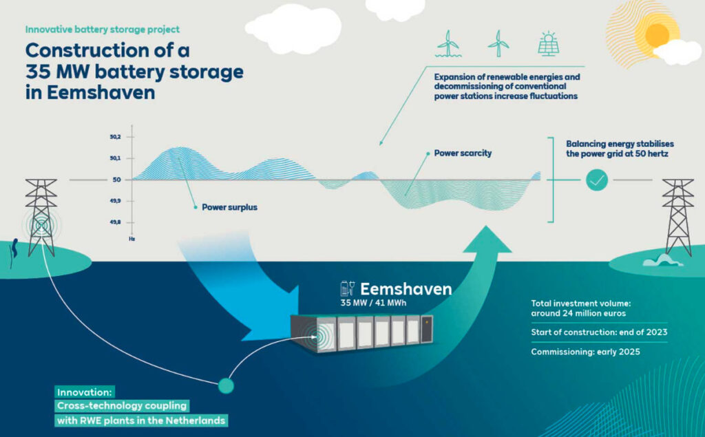 這家跨國(guó)公司將投資2500萬歐元(2550萬美元),在位于Eemshaven的一座生物質(zhì)工廠部署一個(gè)35MW/41MWh電池儲(chǔ)能系統(tǒng)。該項(xiàng)目將于今年年底開始部署,并于2025年初投產(chǎn)。