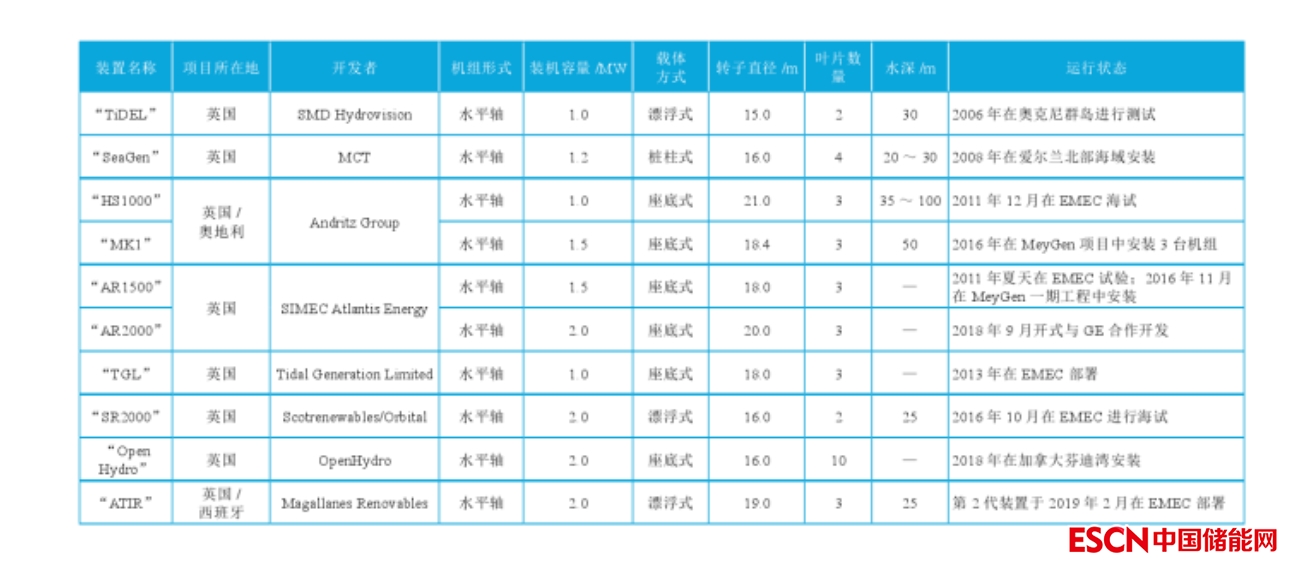 目前國際上的主流潮流能商業(yè)化機(jī)組
