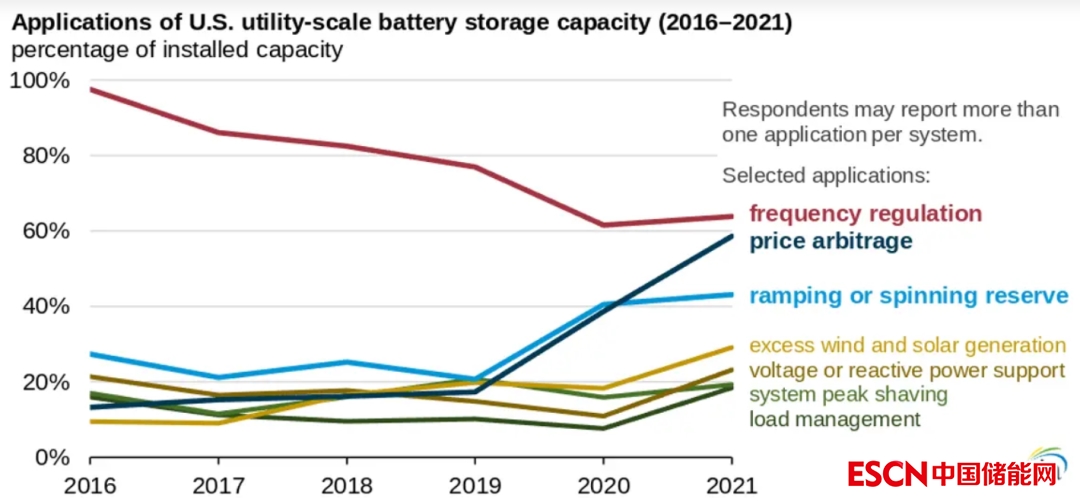 2021年,美國公用事業(yè)規(guī)模的4.6吉瓦的電池儲能容量中有59%用于價(jià)格套利,高于2019年的17%。在某些地區(qū)的電力市場,價(jià)格套利比其他市場使用的更多。例如,2021年加州獨(dú)立系統(tǒng)運(yùn)營商服務(wù)區(qū)增加的電池儲能容量中有80%以上用于價(jià)格套利。