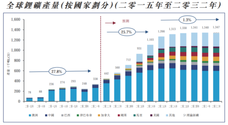2015年-2032年全球鋰礦產(chǎn)量,來源:天齊鋰業(yè)港股IPO招股書