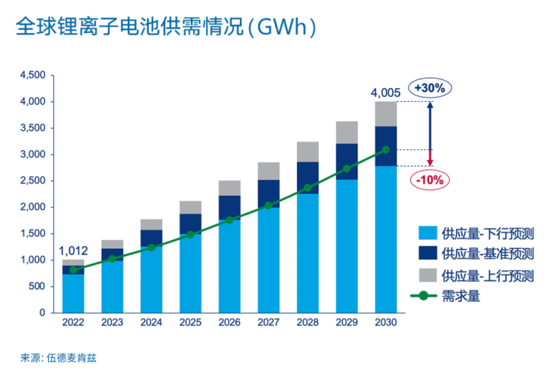 根據(jù)伍德麥肯茲鋰電池數(shù)據(jù)庫,我們共計追蹤了370家電池生產(chǎn)廠。若全部投產(chǎn),2030年的總產(chǎn)能將超過7,000GWh的產(chǎn)能。
