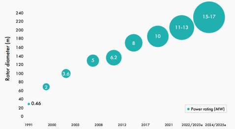 圖4 海上風電機組單機容量增長情況