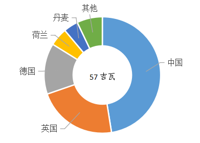 圖2 2021年各國海上風電新增裝機占比情況