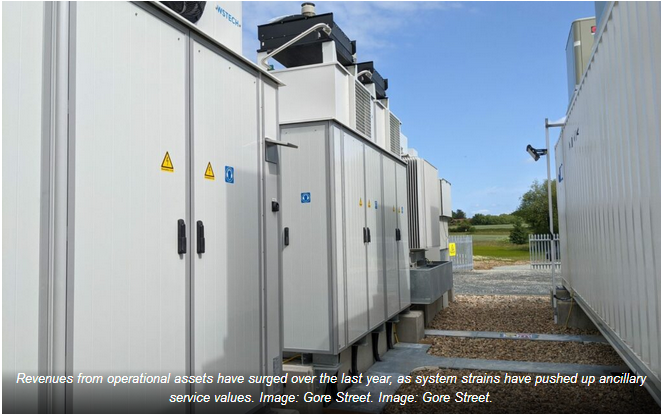 由于電力系統(tǒng)面臨運行壓力推高了輔助服務(wù)價值,Gore Street公司去年在儲能資產(chǎn)方面的收入激增