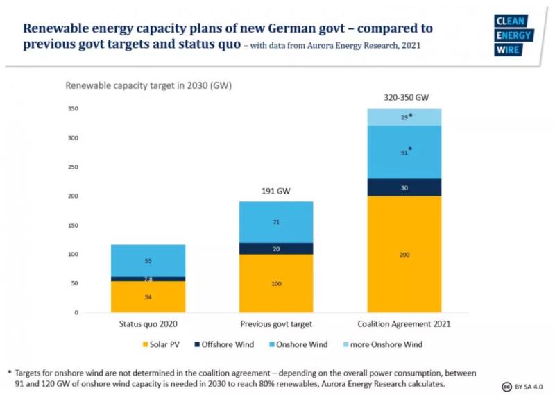為了達(dá)到更高的目標(biāo)并滿足更大的電力需求,德國新政府計(jì)劃提高可再生能源的發(fā)電能力,到2030年將達(dá)到200吉瓦的太陽能光伏發(fā)電和30吉瓦的海上風(fēng)電。