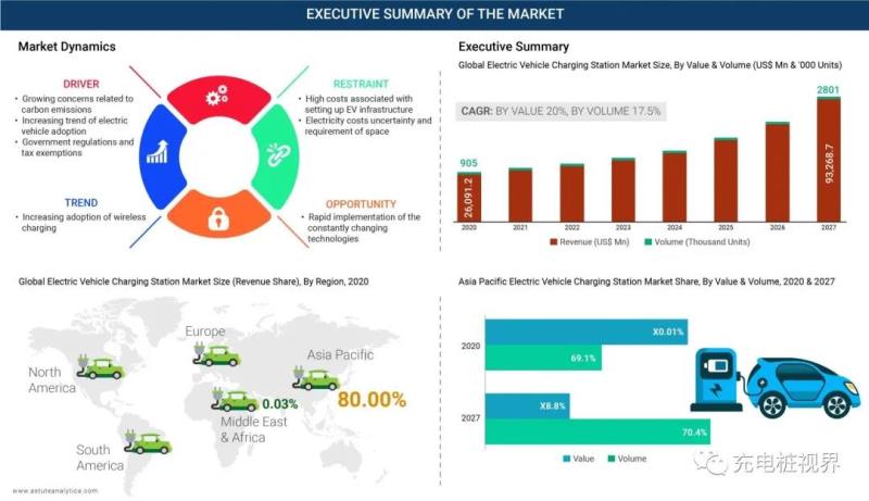 根據(jù)Astute的一份報(bào)告,全球電動(dòng)汽車(chē)充電樁(EVCS)市場(chǎng)預(yù)計(jì)到2027年底將創(chuàng)下930億美元的收入,期間復(fù)合年增長(zhǎng)率接近20%。
