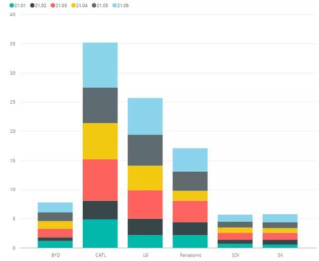 說完新能源汽車的增長,再回到動(dòng)力電池的銷量數(shù)據(jù)。從來看,目前中國和韓國的電池供應(yīng)商都在持續(xù)上量。2021年上半年: