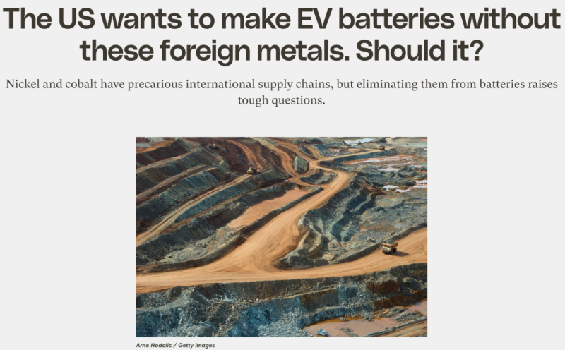 Vox網(wǎng)站發(fā)表文章,題目是:The US wants to make EV batteries without these foreign metals. Should it?(美國希望在沒有來自外國金屬的情況下制造電動汽車電池。應(yīng)該嗎?)