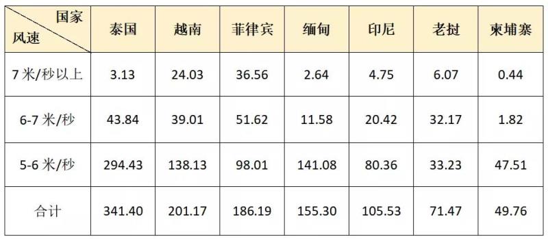 表:東盟主要國家風(fēng)電技術(shù)可開發(fā)量(單位:GW)