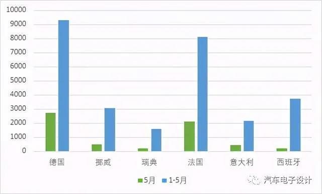 圖2 主要歐洲國家1-5月份的新能源銷量數(shù)據(jù)