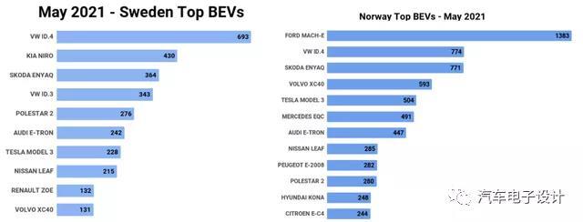 瑞典和挪威市場的純電數(shù)據(jù)比較清晰,如下所示,黑馬是福特的野馬Mach-E銷量數(shù)據(jù)為1383臺。由于投放很激烈,目前來看挪威的BEV的競爭可能往中國的投放狀態(tài)發(fā)展了。