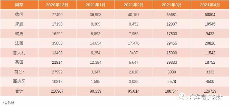 圖2 主要歐洲國家4月份的新能源銷量數(shù)據(jù)