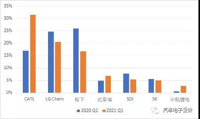 如果單獨(dú)把LG Chem和CATL進(jìn)行對(duì)比的話,國(guó)內(nèi)市場(chǎng)穩(wěn)固的條件下,把歐洲的供給占下相當(dāng)一部分,如果按照海外12.61GWh的數(shù)字來看,寧德3月占有率為20%左右,LG和松下分別為30%和28%。3月份,LG的主要用量包括中國(guó)制造的1萬臺(tái)特斯拉Model Y型,歐洲的大眾ID.3和福特野馬Mach-E,但是去年的ZOE等是失速的。