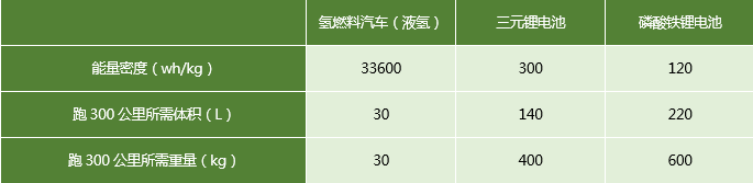 表五:氫燃料電池與鋰離子電池對比