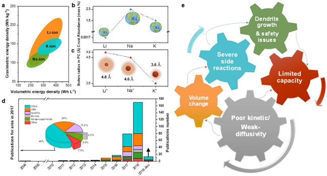 鉀離子電池由于其低成本、高能量密度,電解液中快的離子傳導(dǎo)性以及高的工作電壓近年來引起了極大的關(guān)注。