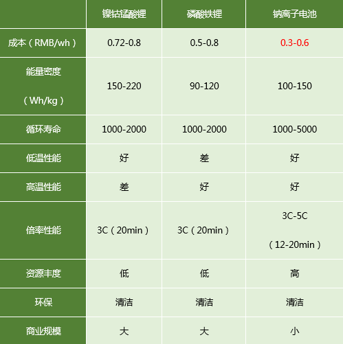 表四:鈉離子電池與鋰離子電池電池技術(shù)對比
