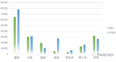 3月份是第一季度的末尾,從新能源汽車的角度來看,德國、挪威、瑞典、法國、意大利、英國和西班牙的新能源汽車的銷售數(shù)量分別為65681 、12997 、17500 、29455 、15000 、39333 、3000 、5578和上個(gè)月的40,157、8,452、7,953、17,476、8437、6,647和3,082,相比,3月份都有很大的提升。