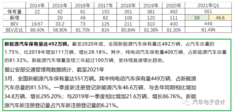 公安部最近發(fā)布了一個(gè)數(shù)據(jù),第一季度注冊的新能源汽車46.6萬臺,保有量551萬臺,這里的數(shù)據(jù)我比對了一下,有點(diǎn)疑惑。因?yàn)槿ツ?2月底說的保有量在492萬,這里交代的Q1是46.6萬,和保有量的差異59萬對不上。