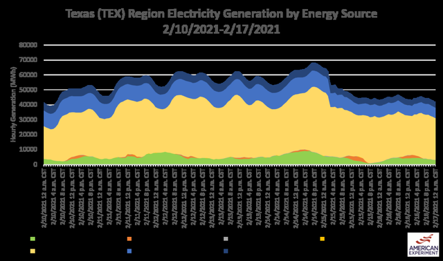 數(shù)據(jù)顯示,2月15日早上,得州電網(wǎng)失去約45千兆瓦(GW)產(chǎn)能,其中30千兆瓦都是以天然氣為主的基于燃料的發(fā)電來源。