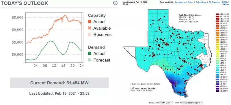 中國儲能網(wǎng)訊:美國德克薩斯州的大寒潮最終演變成為一場嚴(yán)重的停電事故,并且引發(fā)了全世界的關(guān)注。截至北京時間2月19日,從ERCOT的官網(wǎng)來看,電力需求和供給已經(jīng)恢復(fù)到了正常水平,電價也不再出現(xiàn)9000美元的極端情況。