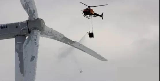 一張直升機為風(fēng)力渦輪機除冰的照片在網(wǎng)上瘋傳,網(wǎng)民聲稱照片顯示一種化學(xué)解決方案被應(yīng)用于德克薩斯州的一個大型風(fēng)力發(fā)電機上。