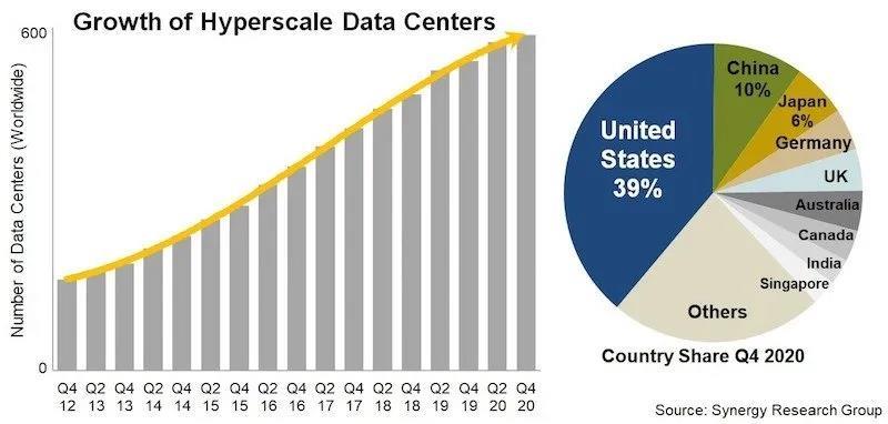 中國儲能網(wǎng)訊:根據(jù)SynergyResearchGroup的最新數(shù)據(jù),截至2020年底,超規(guī)模提供商擁有的大型數(shù)據(jù)中心總數(shù)增至597個(gè),是2015年數(shù)據(jù)中心數(shù)量的兩倍。