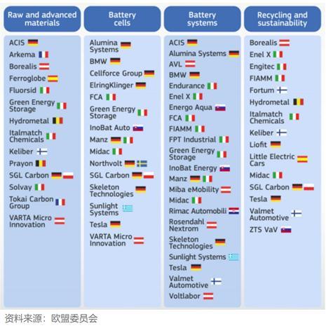 從援助對(duì)象來看,既有寶馬、FCA、芬蘭Valmet汽車、特斯拉這樣的整車企業(yè),也有Northvolt、Inobat Auto等歐洲本土電池廠商,還有北歐化工、阿科瑪?shù)葰W洲材料化工企業(yè)。絕大多數(shù)是歐洲各國的整車、電池及材料領(lǐng)域的企業(yè)及研究機(jī)構(gòu),其中不少是初創(chuàng)公司。