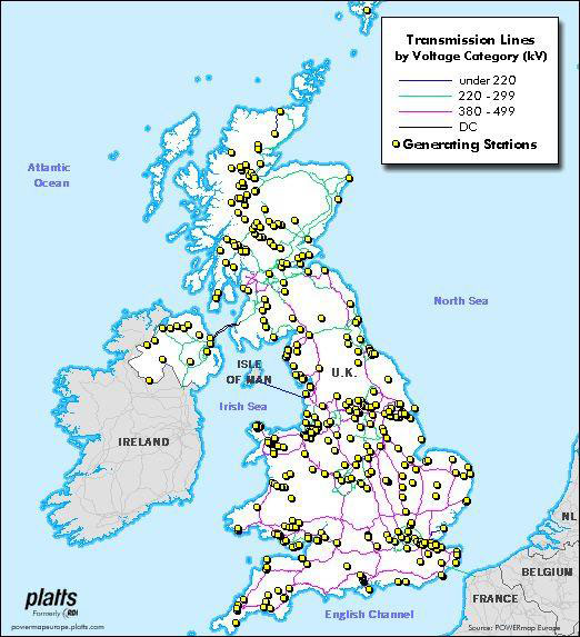 目前英國國家電網(wǎng)系統(tǒng)包含約7200公里的架空線、1400公里的地下電纜和約330個(gè)變電站。在英格蘭和威爾士有高壓輸電系統(tǒng),系統(tǒng)電壓為275kV和400kV。擁有2000MW英法輸電系統(tǒng)、1000MW BritNed英荷輸電系統(tǒng)兩條典型HVDC線路。