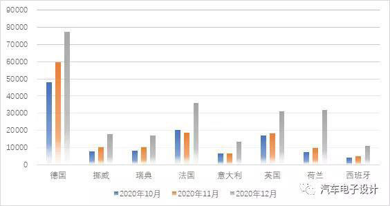 圖3 12月主要的歐洲國家的純電動(dòng)汽車銷量