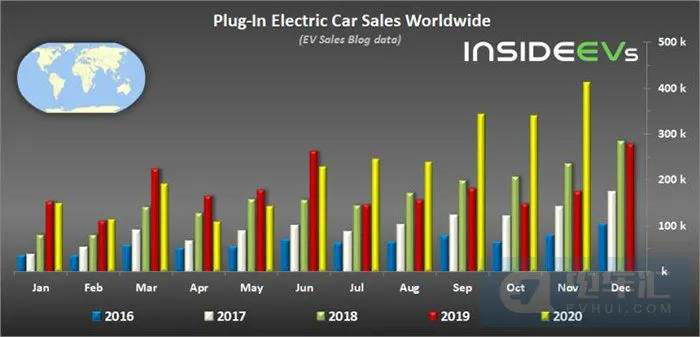 根據(jù)EV Sales Blog的數(shù)據(jù),全球新能源車在2020年11月同比增長(zhǎng)了133%,是近八年來最高的,其市場(chǎng)份額達(dá)到了5.9%,也創(chuàng)下了歷史新高。