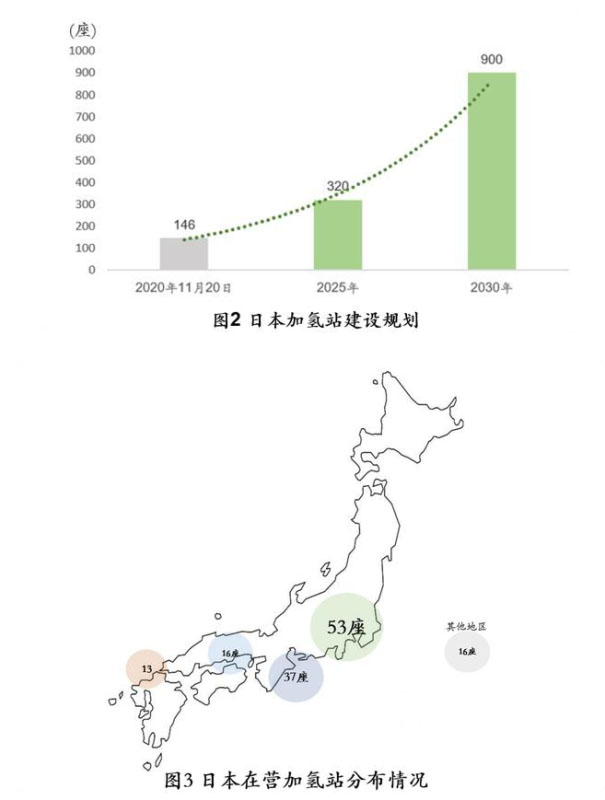 日本政府在2019年3月公布的《氫能利用進(jìn)度表》中提出,計(jì)劃于2025年建成320座商業(yè)化加氫站,到2030年建成900座。