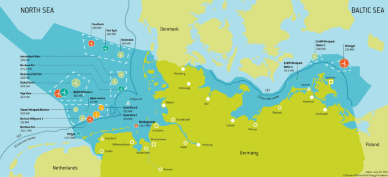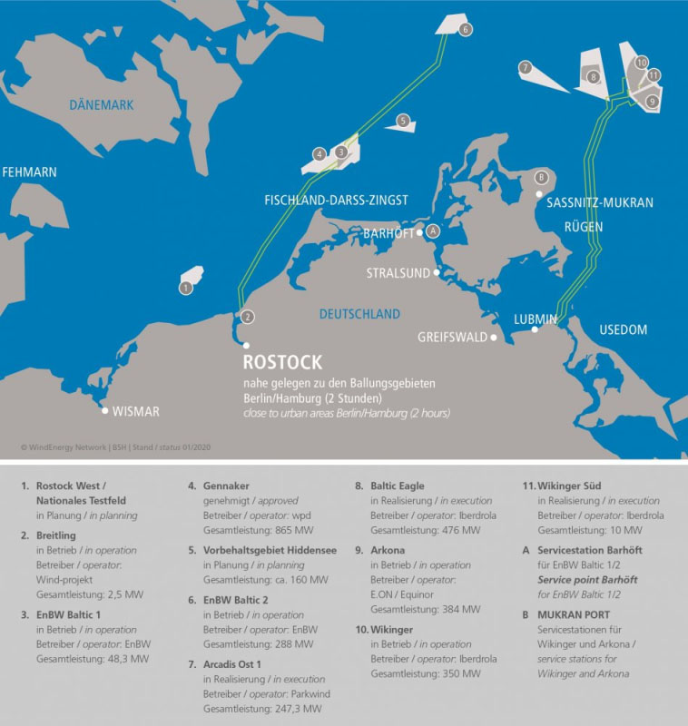 德國在波羅的海的海上風電計劃,EnBW Baltic 1為首個風電場,Arkona容量最大