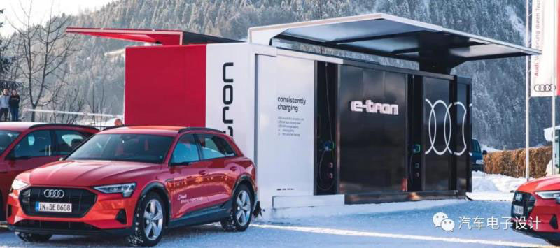 奧迪的方案,是采用了梯次利用的e-tron電池系統(tǒng)(4500個電池,1000kWh的容量),在三個充電接口上提供大約700kW的整體充電容量,每個充電接口輸出功率為150kW,存儲容量約為1.0MWh。奧迪是和ABB合作,這個目的也是在歐洲需求高峰時段將本地電網(wǎng)上的壓力降至最低,來賺取差價的。這也是奧迪在達沃斯經(jīng)濟論壇上部署
