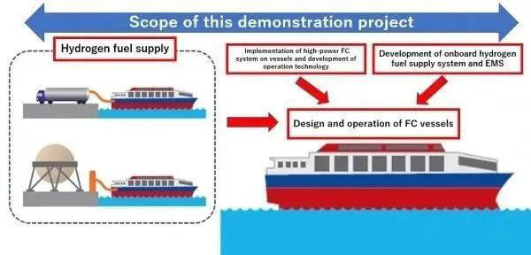 該項(xiàng)目將于2020年9月啟動(dòng),是日本首次嘗試開發(fā)商用燃料電池船舶,并進(jìn)行了涉及氫燃料供應(yīng)的示范操作。使用氫燃料電池作為動(dòng)力源,將有可能完全消除航行過(guò)程中的溫室氣體(GHG)排放。