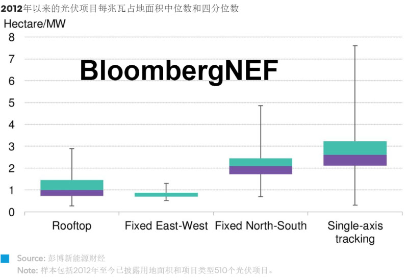 2018年及以后的光伏項目的平均每兆瓦占地面積
