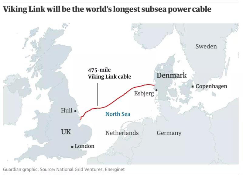據(jù)英國《衛(wèi)報》報道,世界上最長的海底電纜已在英國林肯郡動工。這條被稱為“維京鏈接”(Viking Link)的直流海底電纜將連接英國林肯郡比克芬和丹麥南日德蘭地區(qū),以共享兩國之間的可再生能源。