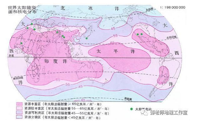 全球人類目前每年能源消費(fèi)的總和只相當(dāng)于太陽在40分鐘內(nèi)照射到地球表面的能量。根據(jù)國際太陽能熱利用區(qū)域分類,全世界太陽能輻射強(qiáng)度和日照時間最佳的區(qū)域包括北非、中東地區(qū)、美國西南部和墨西哥、南歐、澳大利亞、南非、南美洲東、西海岸和中國西部地區(qū)等。