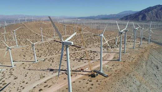 美國(guó)加州圣戈?duì)柛昴釆W山口(San Gorgonio Pass)周圍的數(shù)百臺(tái)老式風(fēng)力發(fā)電機(jī)是在上世紀(jì)80年代建造的,是美國(guó)最老的商業(yè)風(fēng)力發(fā)電場(chǎng)之一?,F(xiàn)在,能源公司Brookfield Renewable Partners計(jì)劃拆除460座老舊的風(fēng)力發(fā)電機(jī),代之以11座新的大型風(fēng)機(jī),這些風(fēng)機(jī)將能夠產(chǎn)生同樣數(shù)量的電力,財(cái)務(wù)收益更好。這一改建項(xiàng)目的申請(qǐng)已經(jīng)遞交聯(lián)邦機(jī)構(gòu)審查,環(huán)境評(píng)估草案目前正在公開征求意見。
