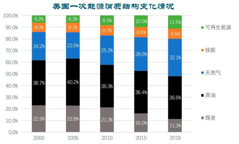 美國(guó)能源消費(fèi)結(jié)構(gòu)低碳化趨勢(shì)明顯
